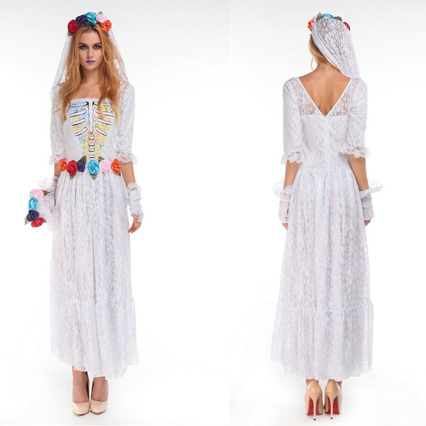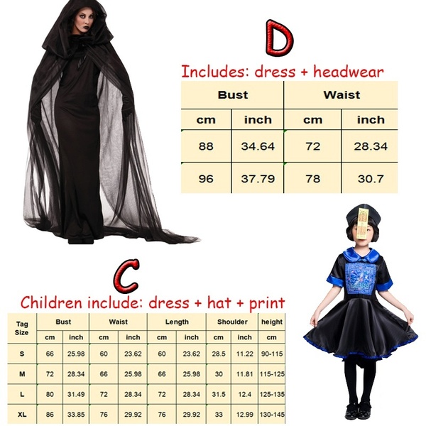 Adult Size Information Unit:cm/inch 1Inch=2.54cm [Size XS , Bust 76-87/29.9-34.2 , Waist 68-73/26.8-29.8 , Length 95/37.4 ] [Size S , Bust 78-88/30.7-34.6 , Waist 70-74/27.6-29 , Length 96/37.8 ] [Size M , Bust 84-92/33.1-36.1 , Waist 72-76/28.3-29.9 , Length 97/38.2 ] [Size L , Bust 86-94/33.9-36.9 , Waist 74-78/29.1-30.6 , Length 98/38.6 ] [Size XL , Bust 96-100/37.8-39.3 , Waist 76-82/29.9-32.2 , Length 99/39.0 ] [Size XXL , Bust 98-104/38.6-40.8 , Waist 82-88/32.3-33.8 , Length 100/39.4 ] [Size 3XL , Bust 100-118/39.4-46.3 , Waist 86-90/33.9-35.3 , Length 101/39.8 ] Package Included: 1*dress + 1*Shawl cap