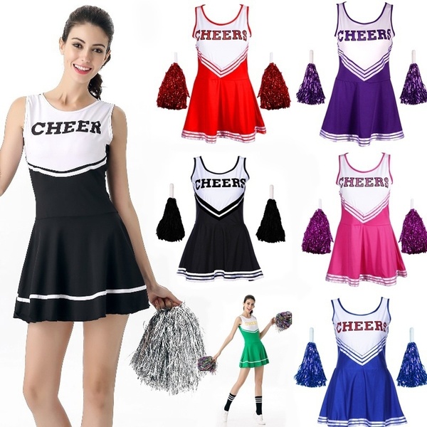 School Girl Outfits Fancy Dress Cheer Leader Uniform Purple/Black/Rose/Blue S-XL