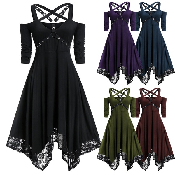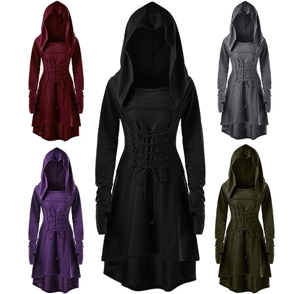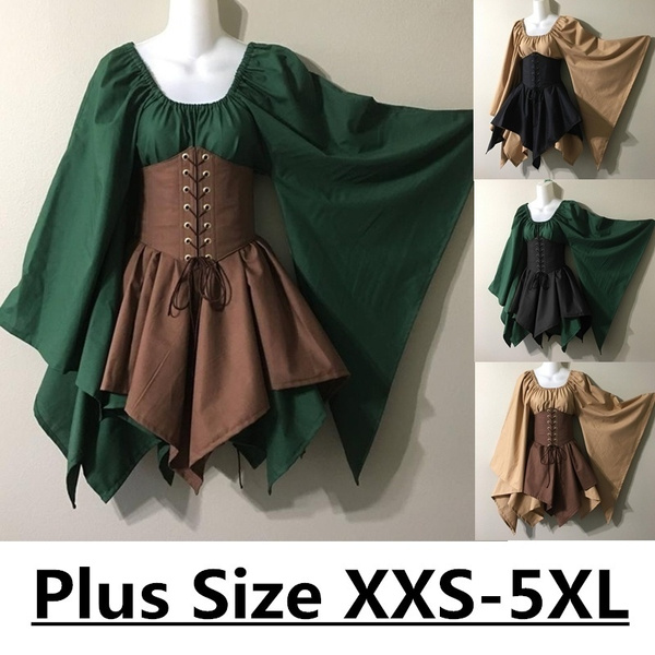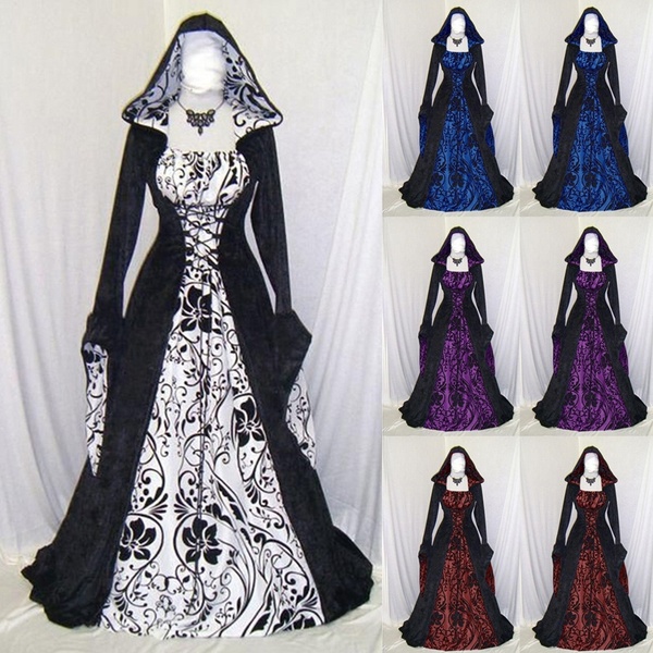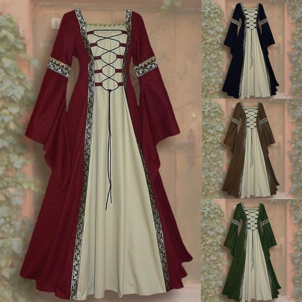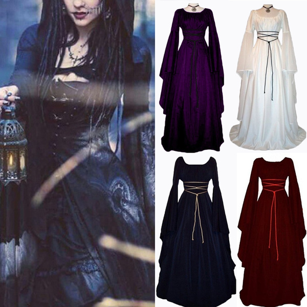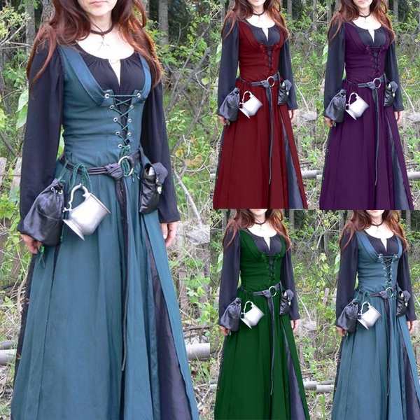Style: Middle Ages pattern: plain Skirt length: long skirt Sleeve length: long sleeve Waist type: high waist Clothing door: sleeve Popular elements: stitching, irregular Fabric Name: Polyester Color: wine red, purple, blue, black Size: S, M, L, XL, XXL, XXXL