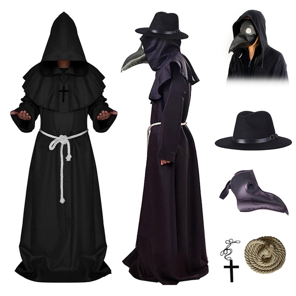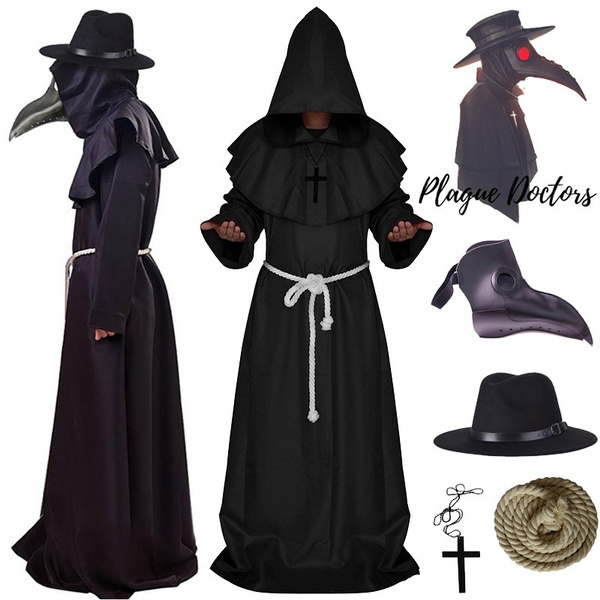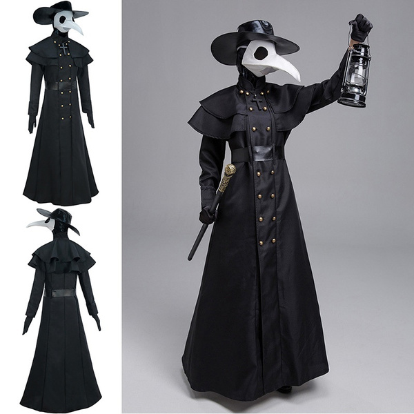 2020 Halloween Plague Doctor Cosplay Costume Steampunk Medieval Hooded Dress Mask Hat Dr Pest Role Playing Outfit Adult Halloween Costumes