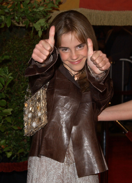 Emma Watson brown leather jacket at Westwood Chamber of Secrets premiere in 2002 4
