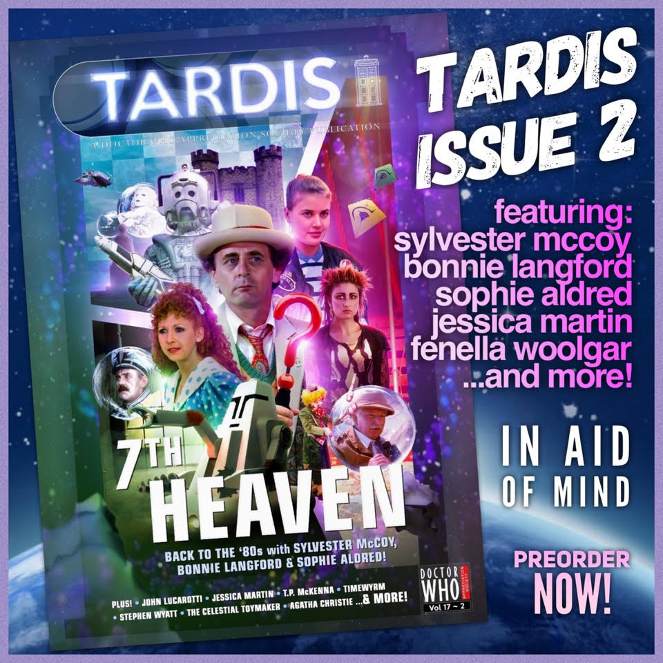 Tuesday, 19 January 2021 – Reported by MarcusThe Doctor Who Appreciation Society has published issue 2 of TARDIS magazine. All sales will benefit ‘MIND’, the mental health charity. TARDIS was first published in 1975 and was brought out of retirement by DWAS in 2020. This issue runs to 64 A4 colour pages and includes: • We speak to the Seventh Doctor himself, Sylvester McCoy, and his television co-stars Bonnie Langford and Sophie Aldred, aka Mel and Ace• John Lucarotti’s widow Rolli provides an in-depth insight into the celebrated Doctor Who writer’s life and work• Missing in Action: We take a comprehensive look at The Celestial Toymaker. This bumper feature includes an analysis of the camera scripts and audience research reports, viewers’ memories, set photos, an interview with dancing doll Delia Lindon, reminiscences from Peter Purves, and a study of Gerald Savory’s play George and Margaret – uncovering some surprising links to the madcap world of the Toymaker!• Stephen Wyatt looks back at his two Doctor Who adventures – Paradise Towers and The Greatest Show in the Galaxy – and recalls his visit to the Gallifrey convention in America• Stephen McKenna, son of T.P. McKenna, remembers his late father, who memorably portrayed Captain Cook in The Greatest Show in the Galaxy• Jessica Martin discusses Greatest Show’s Mags and her graphic novel work. She also provides us with our back-cover art!• Celebrating 100 years of Agatha Christie’s first novel, Mark Aldridge (author of Agatha Christie’s Poirot from HarperCollins) examines her Doctor Who connections, and Fenella ‘Agatha’ Woolgar and Daniel ‘Davenport’ King discuss the popular Tenth Doctor adventure, The Unicorn and the Wasp• Actor Liam Rudden spills the tea on Richard Franklin and John Levene’s outrageous 1984 Edinburgh Fringe show, UNIT: The Great Tea Bag Mystery• We celebrate thirty years of the New Adventures with The New Adventurers! Our four bookwyrms – Daniel, Kevin, Mat and Sarah – provide an illuminating commentary on the controversial Timewrym: Genesys• Blue Kangs are the best! Suzanna Cardash reflects on her time in Paradise Towers’ not so cowardly girl gang…• David J Howe recalls the trials and tribulations of editing his very first fanzine• We trace the history of the annual Oxford vs Cambridge Doctor Who quiz• In ‘Masters of the Land of Fiction’, Emma Reeves discusses her Big Finish audio The Moons of Vulpana,and Simon Guerrier his Tenth Doctor novel The Pirate Loop• We discover Doctor Who’s Cricket Connections• Director Julia Smith talks Fish People and Smugglers in an archive Tardis interview• Mark Campbell analyses the The Twin Dilemma and Paradise Towers novelisations in our second Target Audience feature!• The Space Museum reopens for a look at late ‘80s merchandise – including Dapol action figures and Dalek pyjamas• Paul Magrs celebrates the Seventh Doctor in his column• Gavin French concludes The Timeless Fan with a look back at fandom in the ‘80s• Colin Howard discusses his Paradise Towers VHS cover• Who is the Seventh Doctor?• Nigel Robinson returns for another round of fiendish quiz questions! The magazine costs £9-99 including UK delivery (airmail orders are £13-99 for Europe and £15-99 Worldwide) and may be ordered directly from the DWAS eBay store DWAS members may purchase at a reduced price when via from the online store at the website – www.dwasonline.co.uk FILTER: – DWAS