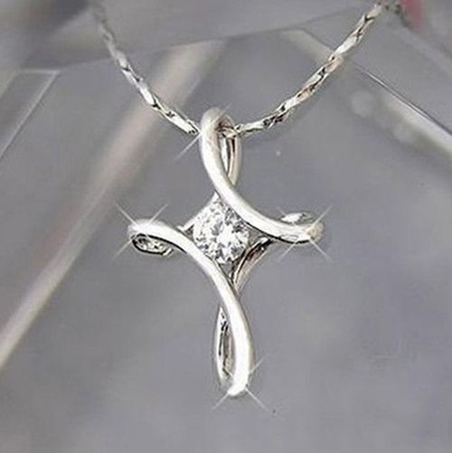 Silver White Plated Crystal Rhinestone Infinity Cross Necklace