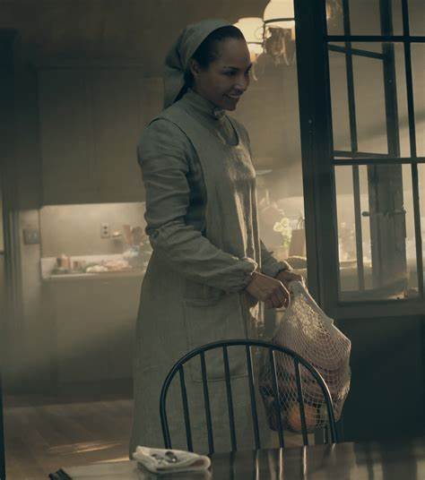 June’s shopping partner. Although June is initially wary of her, it is revealed she is not as pious as she seems, and the two become friends. Emily has a wife and son living in Canada and was a university lecturer in cellular biology. Being homosexual is punishable by death in Gilead, and while most intellectuals are worked to their deaths in the Colonies or executed, Emily, as “Ofglen”, was spared and later converted into a Handmaid, due to her having “two viable ovaries”. She was later captured and cruelly punished as a “gender traitor” for her lesbian relationship with a Martha, and is sent to another household where she becomes “Ofsteven”. She is involved with a resistance movement called “Mayday”. She was in the process of being worked to death in the toxic fields of the Colonies until the attack on the Red Center had her,