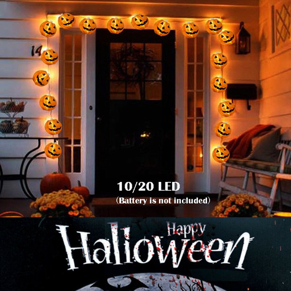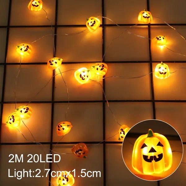 Color: orange Pumpkin + Warm White light Size: 6LED / 0.75m , 10LED / 1.2m , 20LED / 3.1m Material: polyester Pumpkin Size: 7*7.2cm Application:perfect for halloween indoor decoration Powered by 2/3pcs*5# battery (not including)