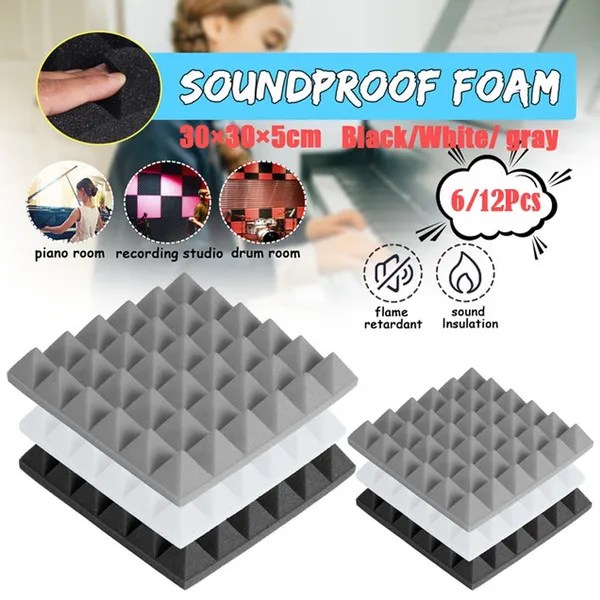 6/12Pcs 30x30x5cm Pyramid Sound Absorbing Sponge
