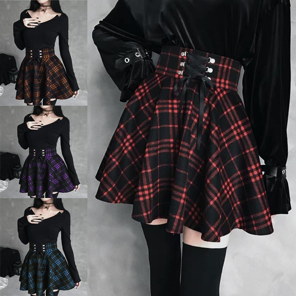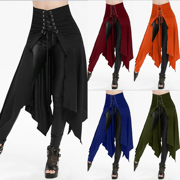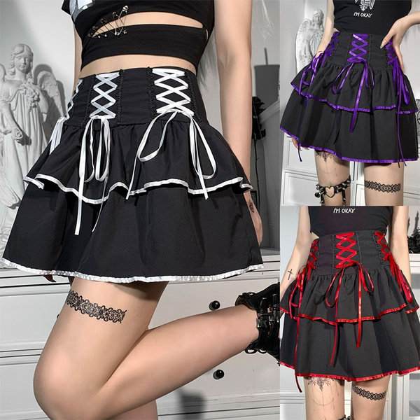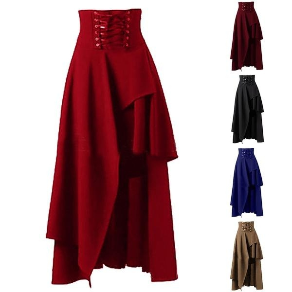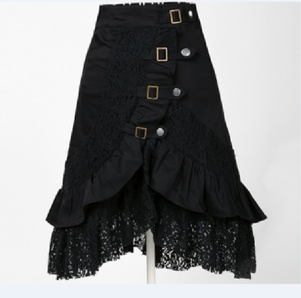 Women Steampunk Vintage Rock Party Black Lolita Gypsy Skirt