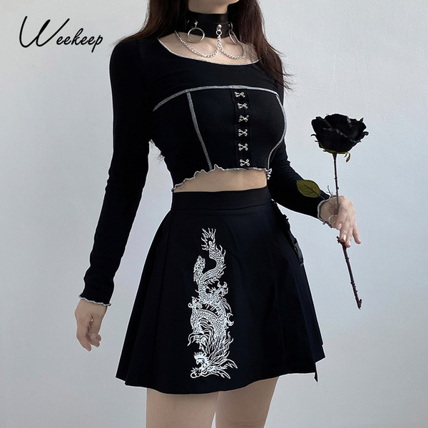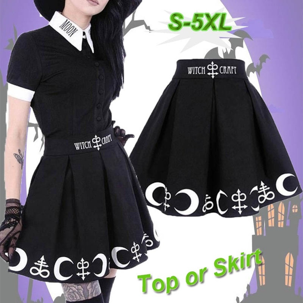 High Waist Pleated Gothic Witch Lolita Skirt Material:Modal Color: Black Size: S,M,L,XL,XXL,3XL,4XL,5XL Package included: Tops or Skirt or Set