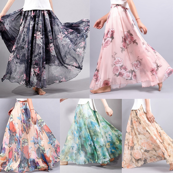 New Maxi Bohemian Style Fashion Elegant Chiffon Skirt