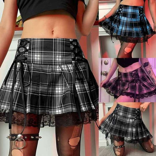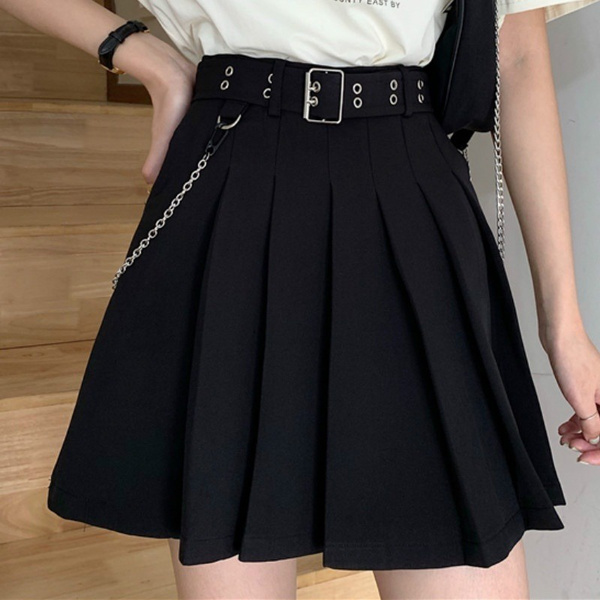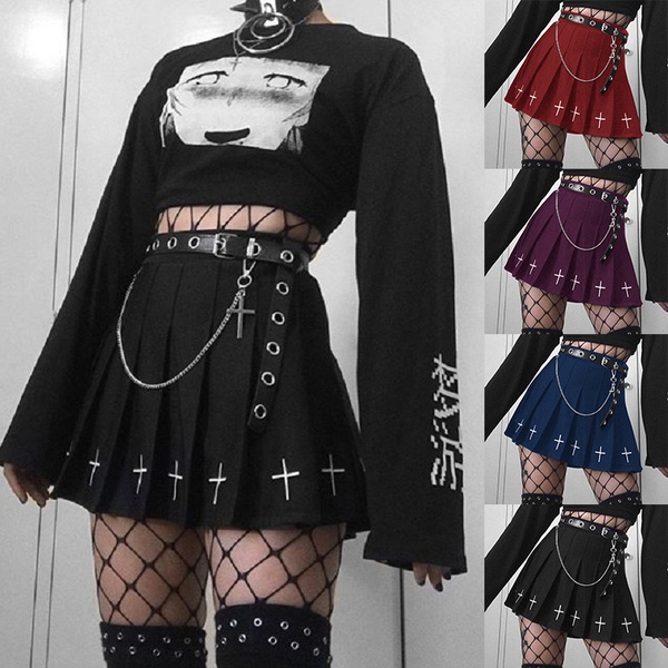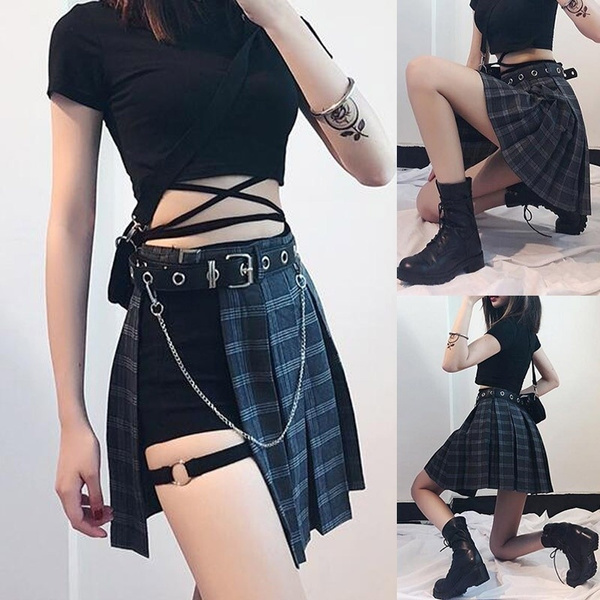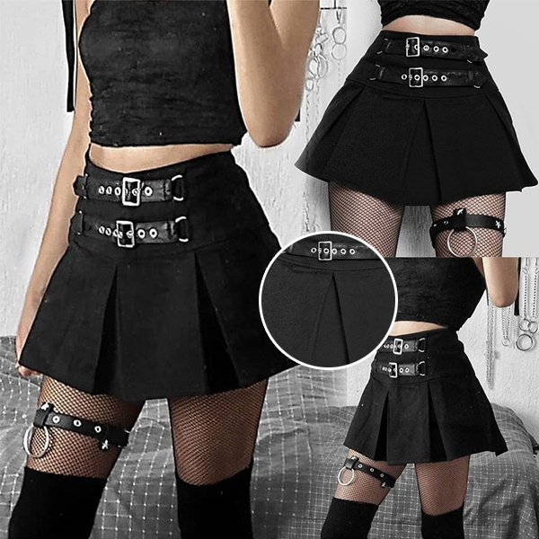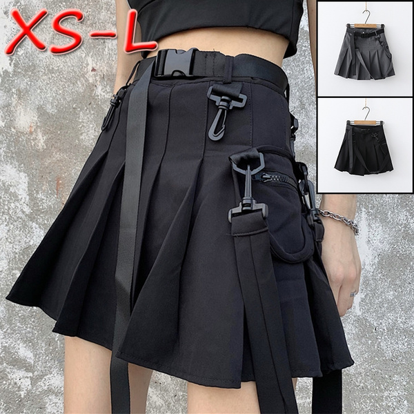 Women Girl Punk Cargo Skirt Vintage Pocket Pleated Japanese Goth