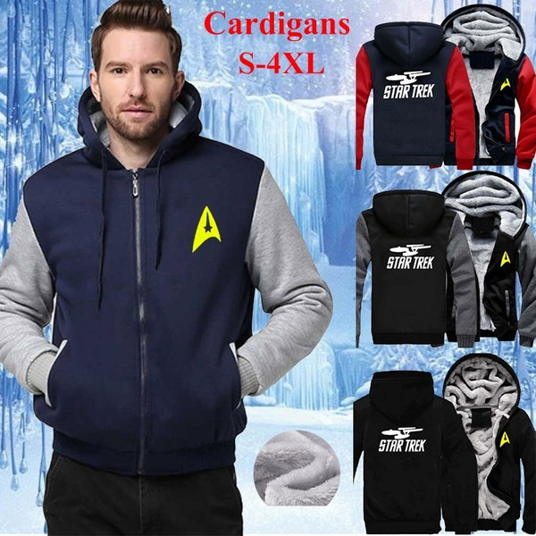 Fashion Men Warm Thicken Hooded Coat Zipper Hoodie Cardigans Thicken Jacket Sweatshirts Star Trek Winter Jackets(Size:S-4XL)