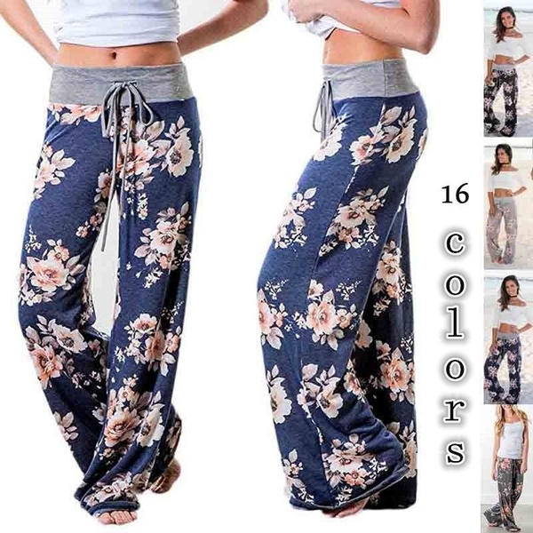 Brand New and High Quality.Polyester. Stretch material,super comfy.Pajama pants, lounge pants, casual pants, palazzo pants, yoga pants, wide leg pants with drawstring, floral print, comfy and stretchy Lounge pjs pants for a cute look. You can get a lot of use from it. Design: elastic waist, high waist, floral print, wide leg and with drawstring. Comfy, soft and stretchy sleep night Lounge Pants, Adjustable drawstring waistband for added comfort. Occasions:casual wear, home wear, sleep wear, going out, yoga, vacation or beach wear.You can wear it in any season for different use. S:[Waist:25.74 ~ 27.3″ Length:40.95″]; M:[Waist:27.3 ~ 28.86″ Length:41.34″]; L:[Waist:28.86 ~ 30.42″ Length:41.73″]; XL:[Waist:30.42 ~ 31.98″ Length:42.12″]; 2XL:[Waist:31.98 ~ 33.54″ Length:42.51″]; 3XL:[Waist:33.54 ~ 35.10″ Length:42.91″] Please tie the string before wash to make sure the string would not string out, Hand or gentle machine wash in cold water / Do not bleach / Line dry. It won’t shrink after wash and dried.